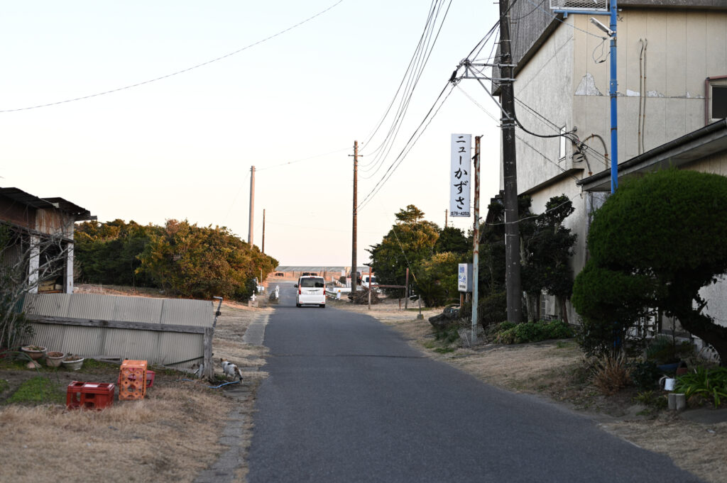店舗横の路地を海方向の進んだ場所。隣に立地している「ニューかずさ」という旅館は姉妹店なのであろうか。