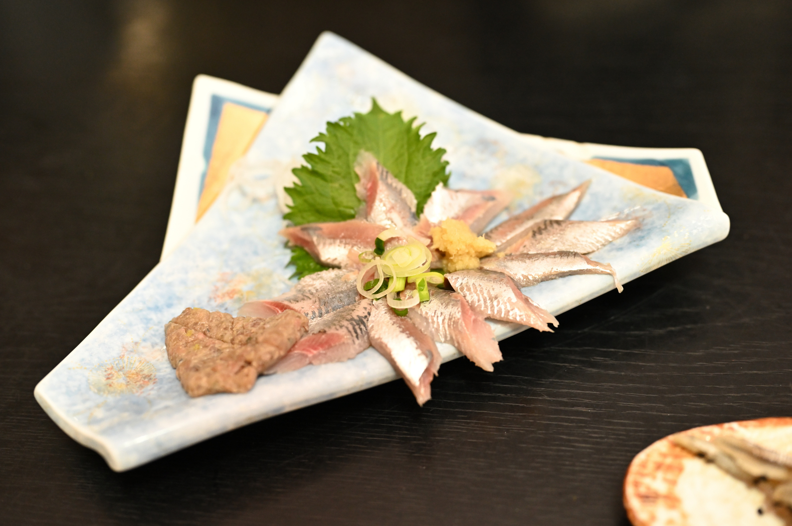 いわしセットの「いわし刺身」「いわしのなめろう」。