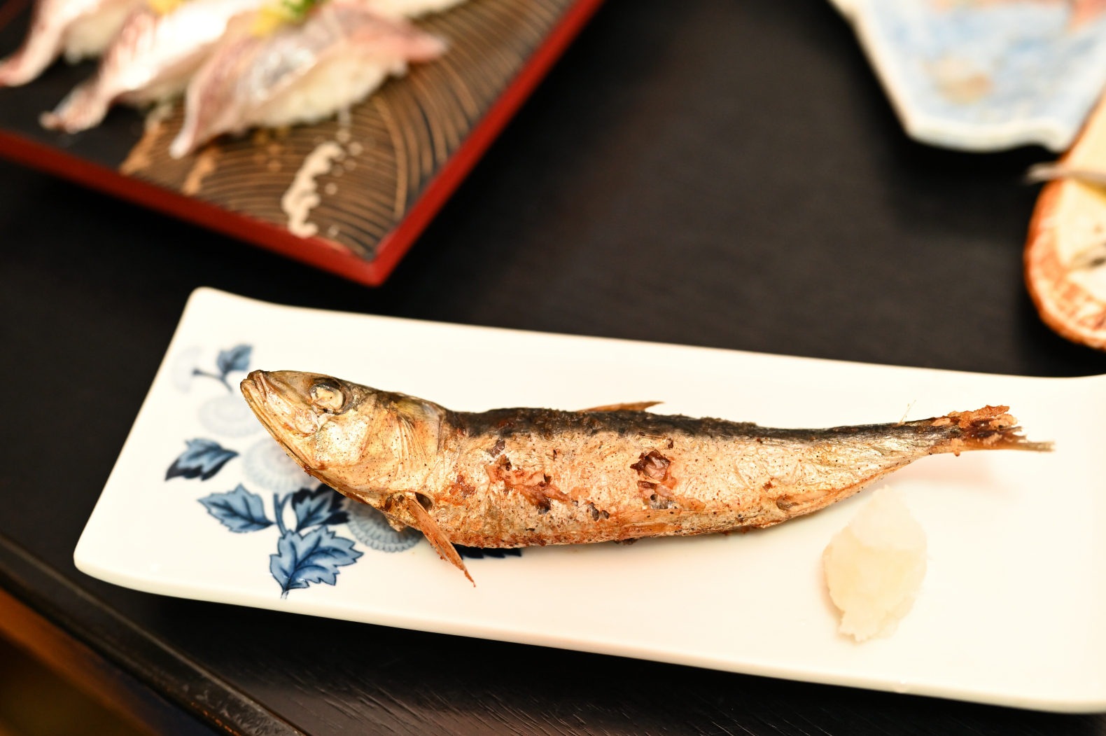 イワシの漢字は魚へんに弱いと書くほど鮮度が落ちるのがとても早い魚。「ウチのイワシは漁師さんから直で仕入れているから新鮮なのよ」とかずさの女将さんが教えてくれた。しかも九十九里近海で漁獲されるイワシだそうな。