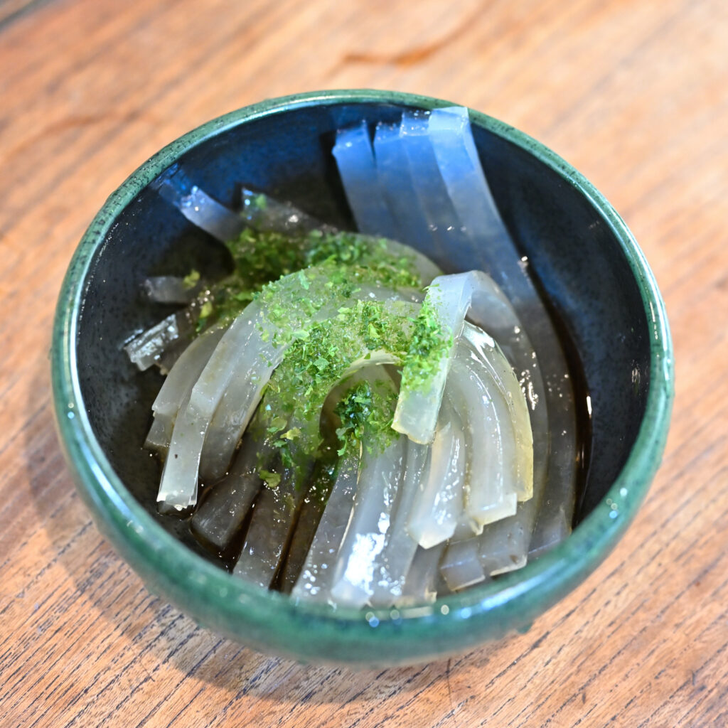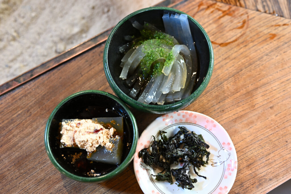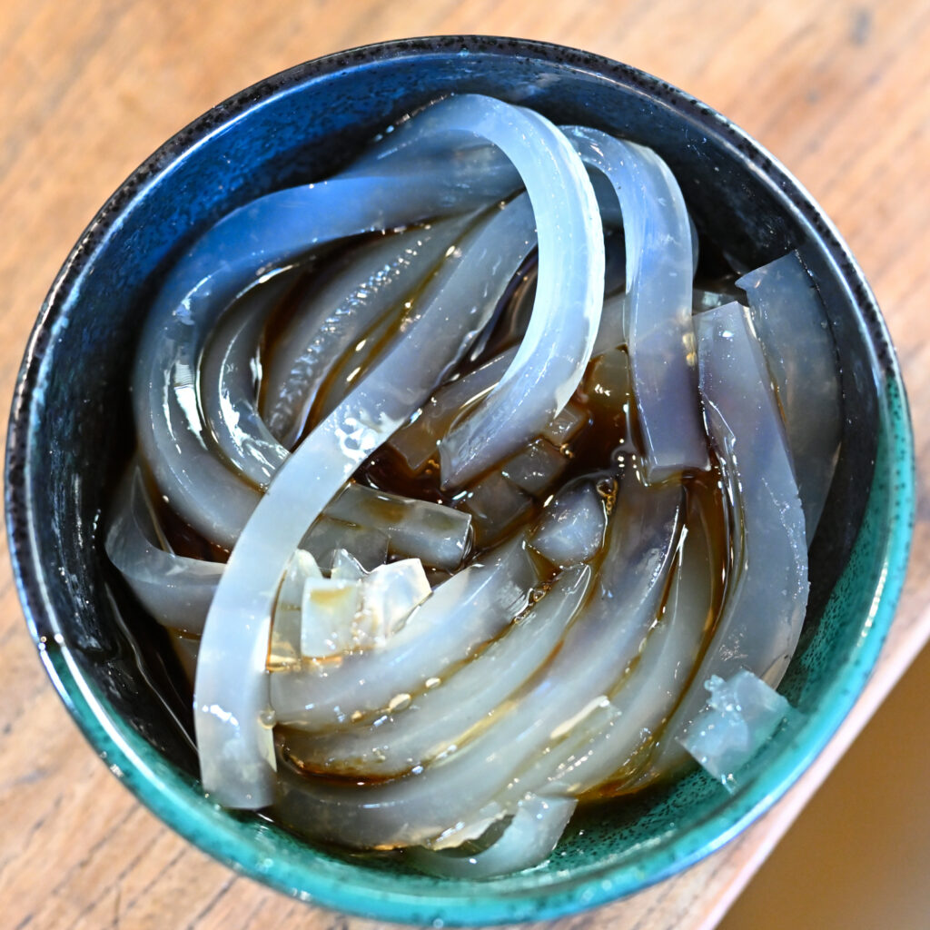 オーダーしたのは酢醤油のところてん。あとの2品は女将さんのサービスだった。感謝。