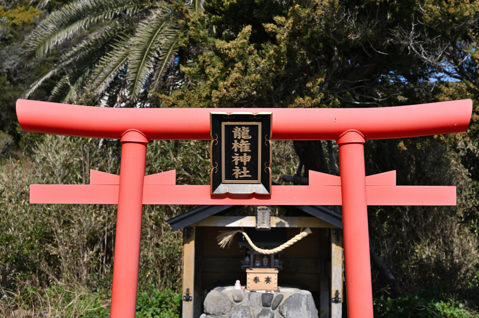 南伊豆らしくヤシの木が生えていた。山はまだまだ冬色の木々が覆っていた。