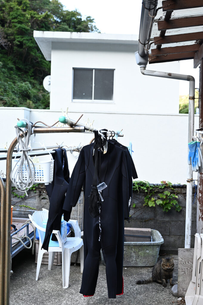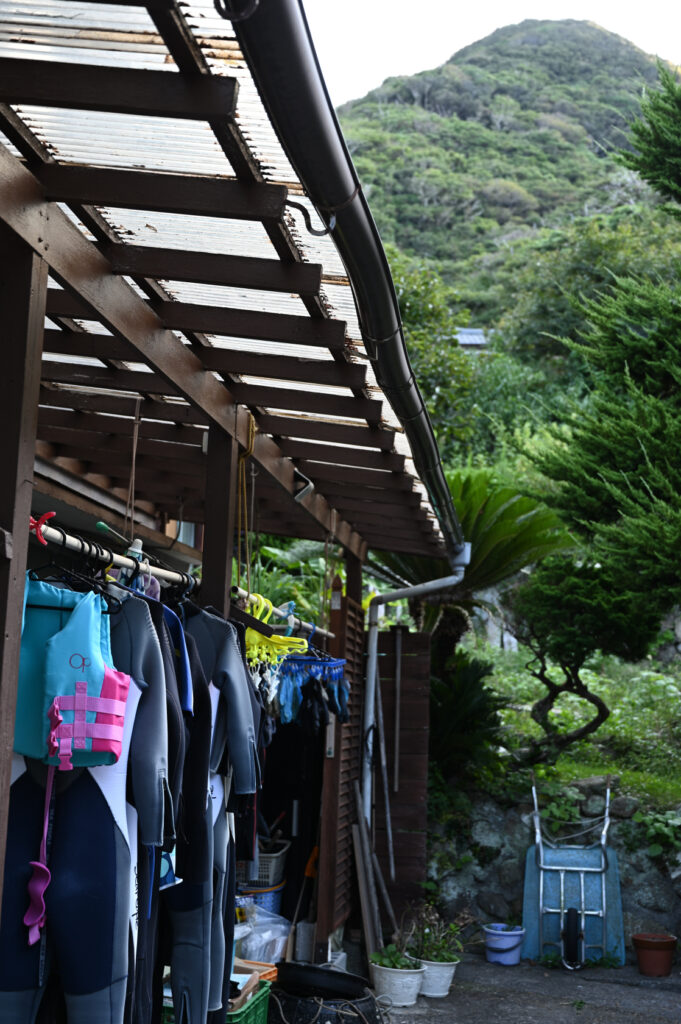 満室の甚四さんだったので、ウェットスーツが所狭しと干されている。