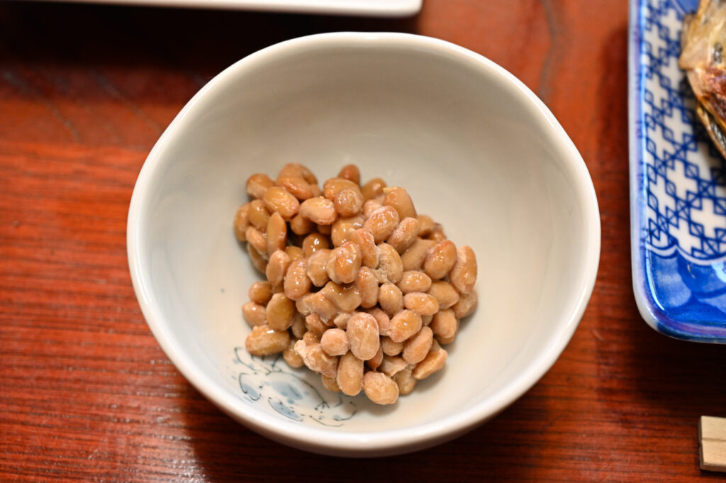 納豆。師匠は潜る前はいつも納豆を食べないので、私がダブルでいただくことになっている。