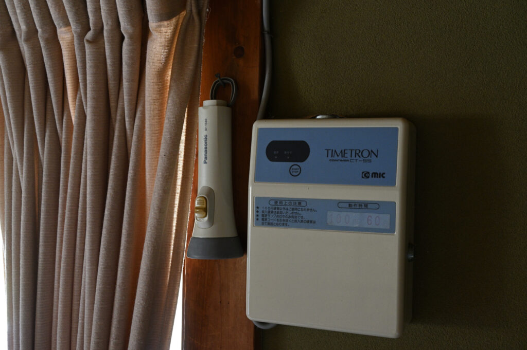 壁には旅館などに良く置いてある時間制のクーラーの課金システムが設置してある。これも趣があってじわりとくる。