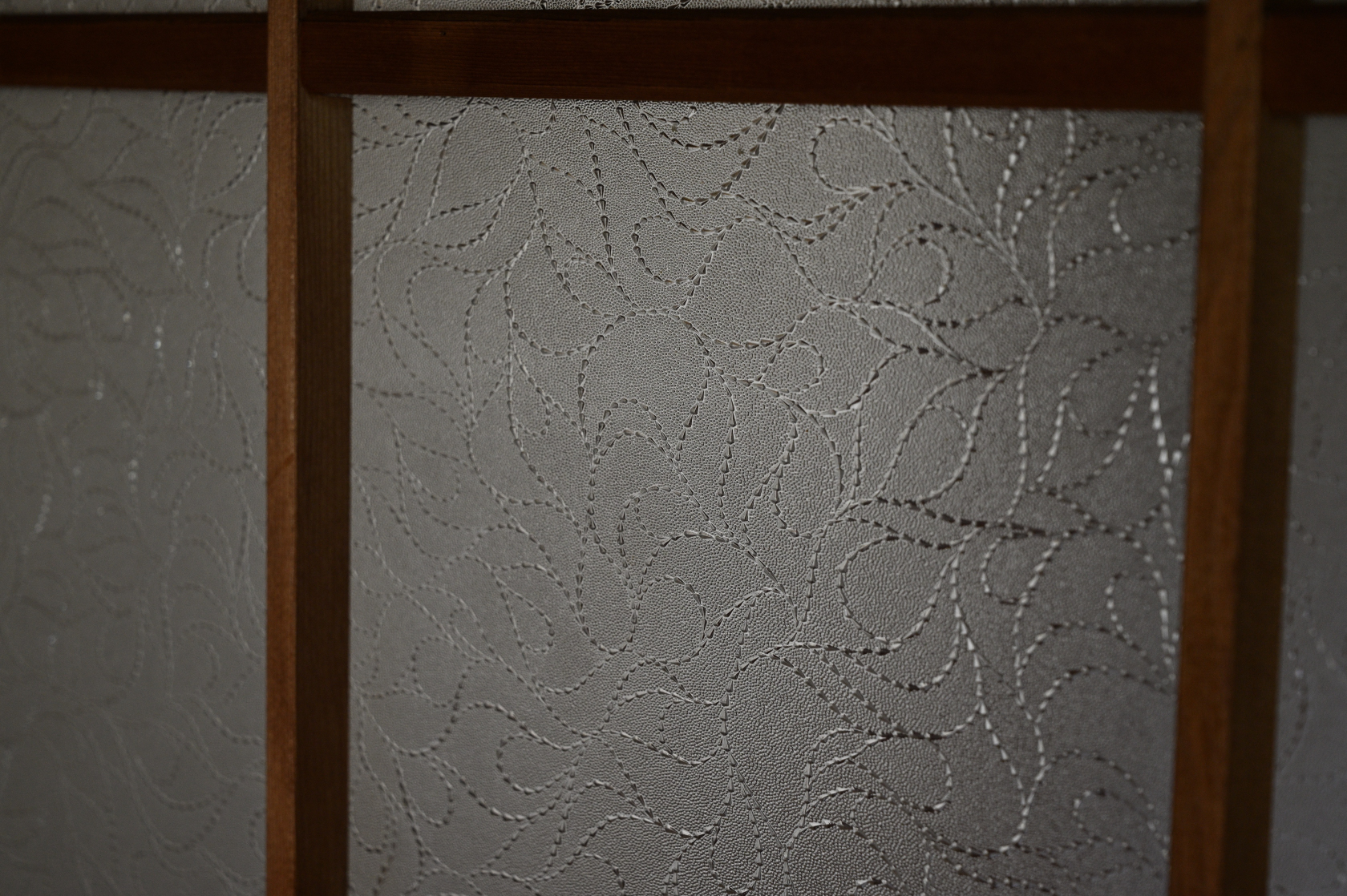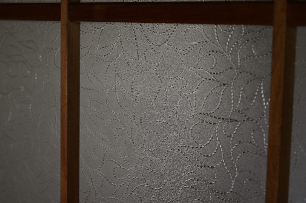 引き戸には型板ガラスがはめ込まれている。その模様越しに中木の光が差し込んできた。