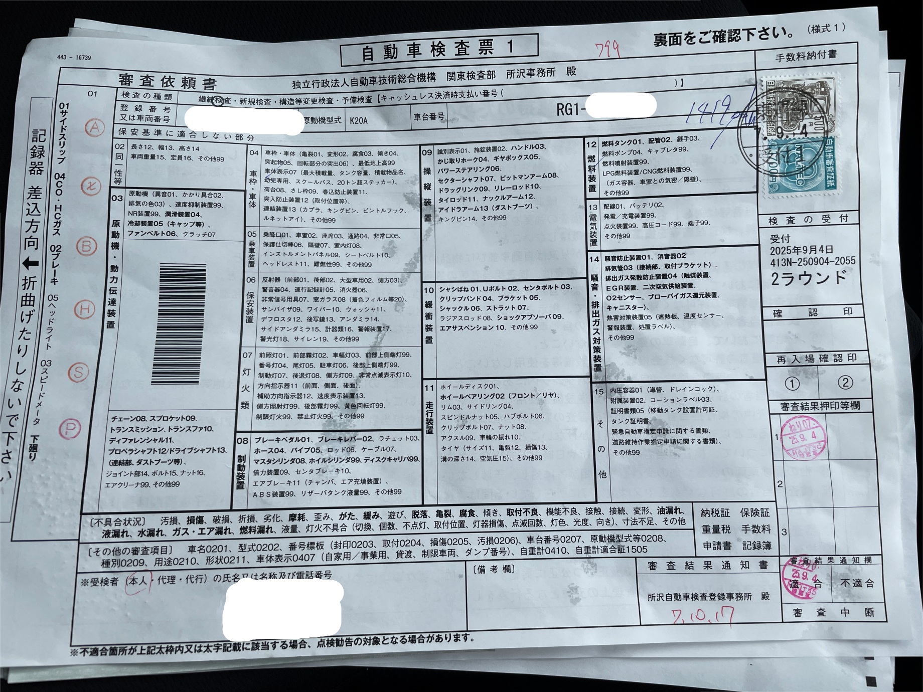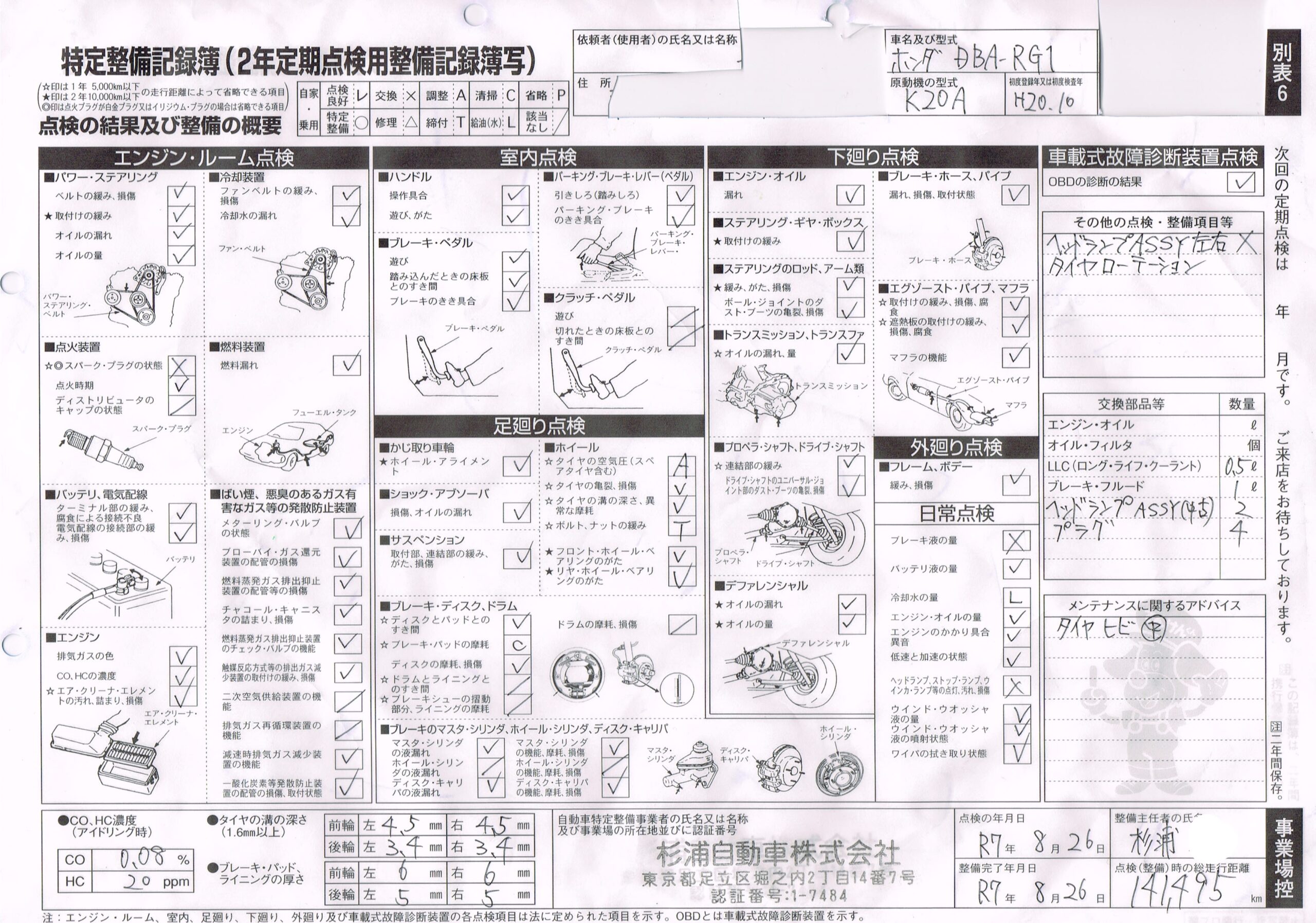 ・説明:HONDA ステップワゴンRG-1の車検の時期になった。現在は2か月前から車検を通すことが出来るので、いつもより少し早めに車検を通してみた。