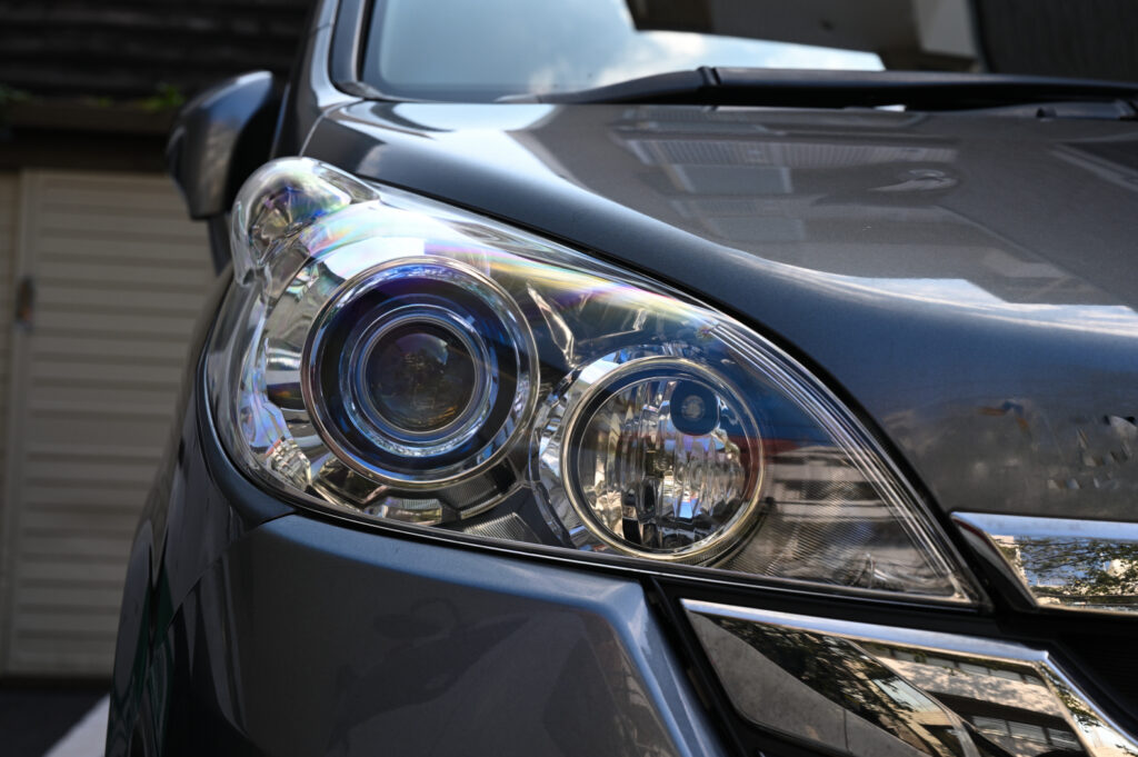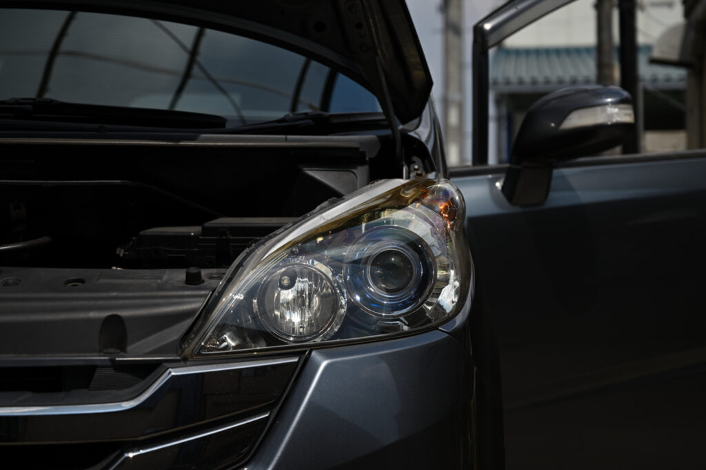黄ばんだヘッドライトユニット。目立つ部分が黄ばんでいたりすると、全体的な印象が古く見えてしまう。