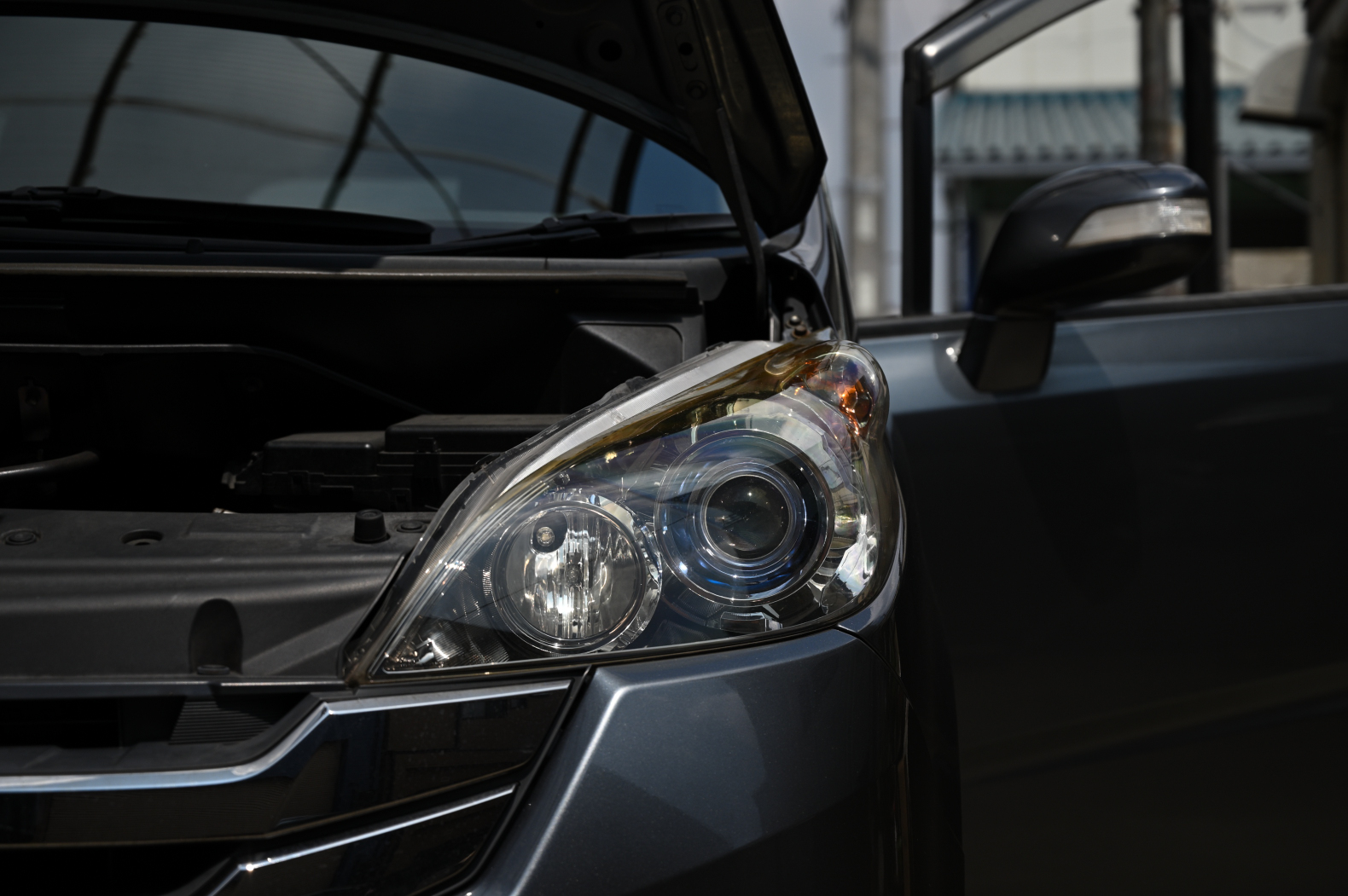 画像はライトの黄ばみが目立つ経年劣化したヘッドライトユニット。