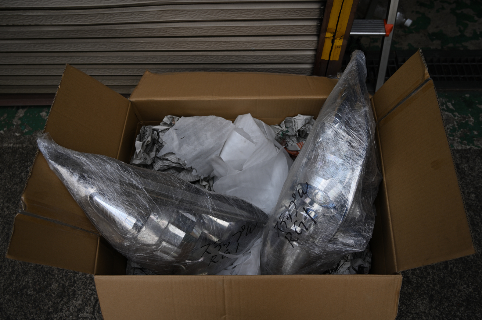 ヤフオクで購入したヘッドライトユニット。傷つかないように丁寧に梱包されていた。「取り外した古いヘッドライトユニットを返送しますか?」と出品者に連絡してみたら、「ありがとうございます。」とのことだったので、事前のお話通りに着払いにて発送させていただいた。ちょっとだけエコに貢献できたと思った。