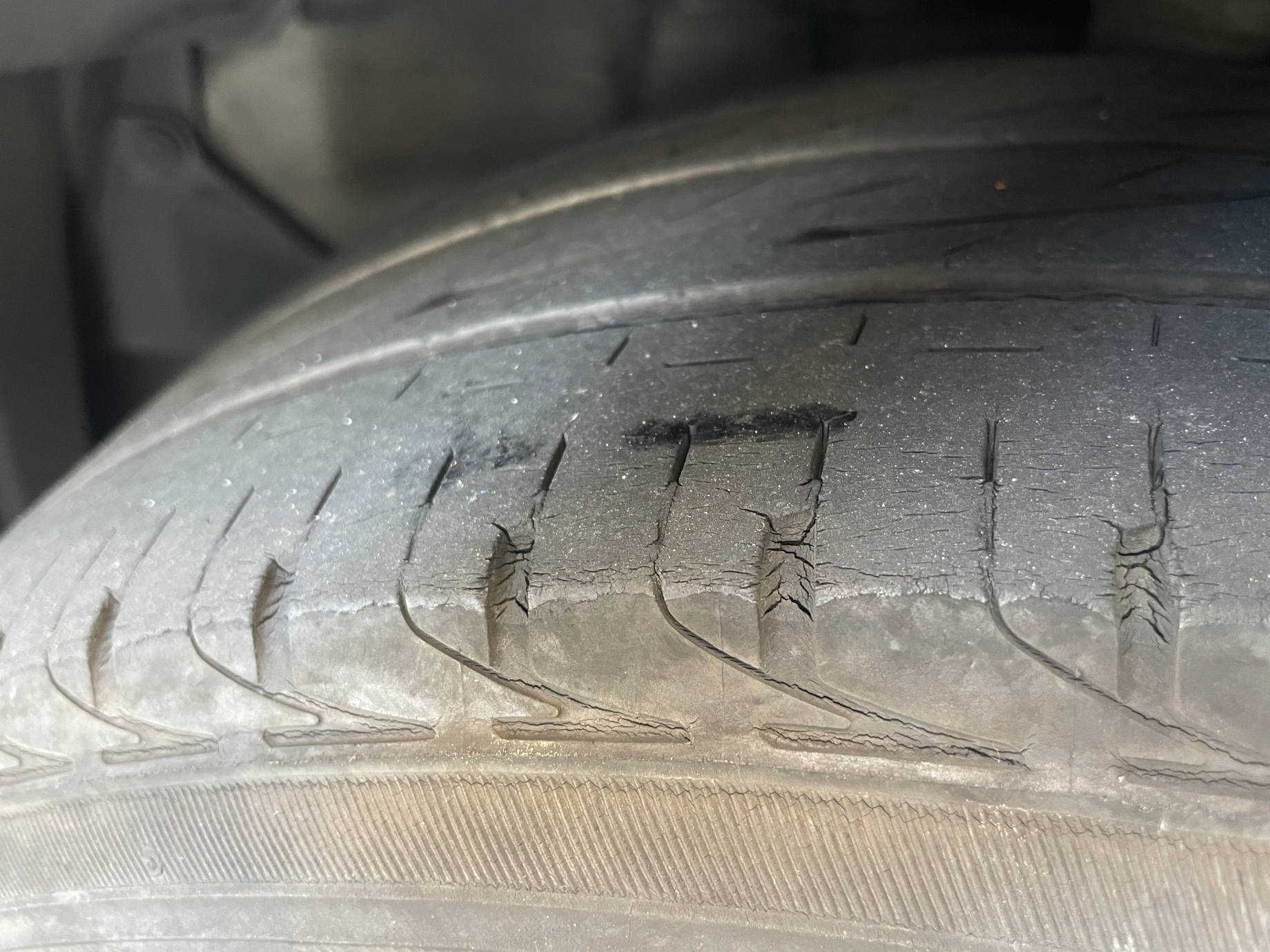 BRIDGESTON REGNO GRVⅡ。やはりヒビ割れが目立つ。2年前の2023年よりヒビ割れが発生していた。