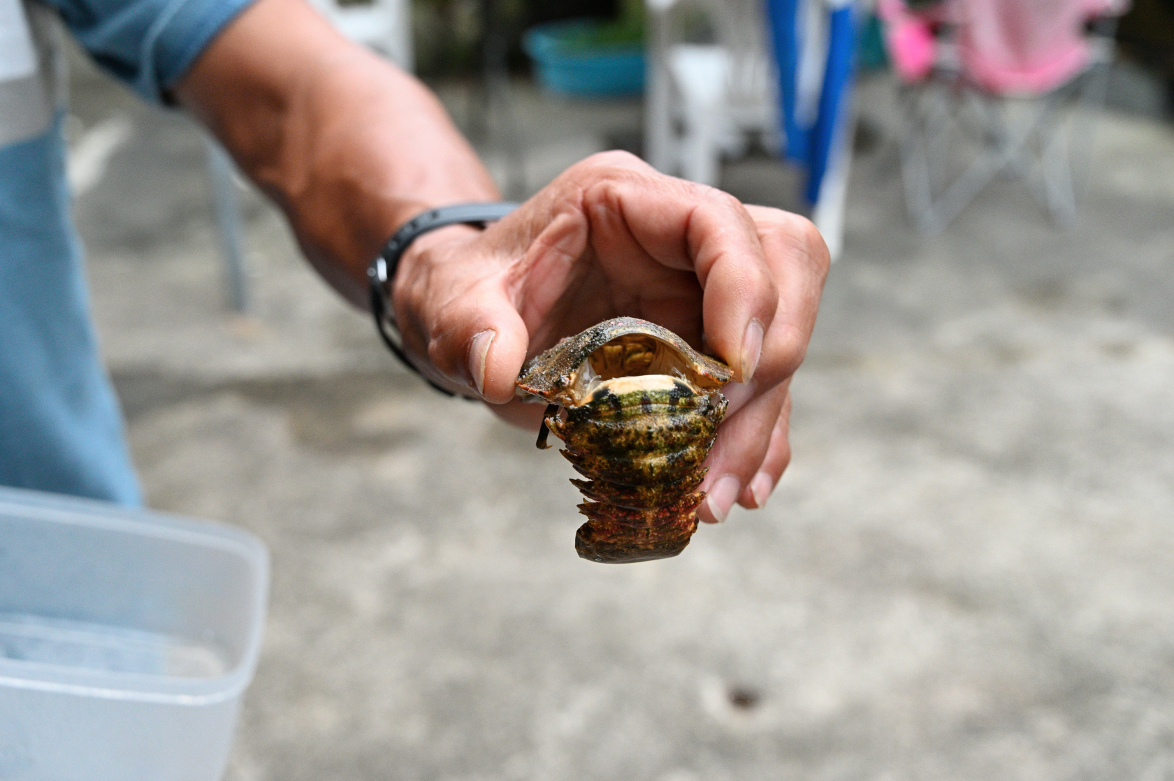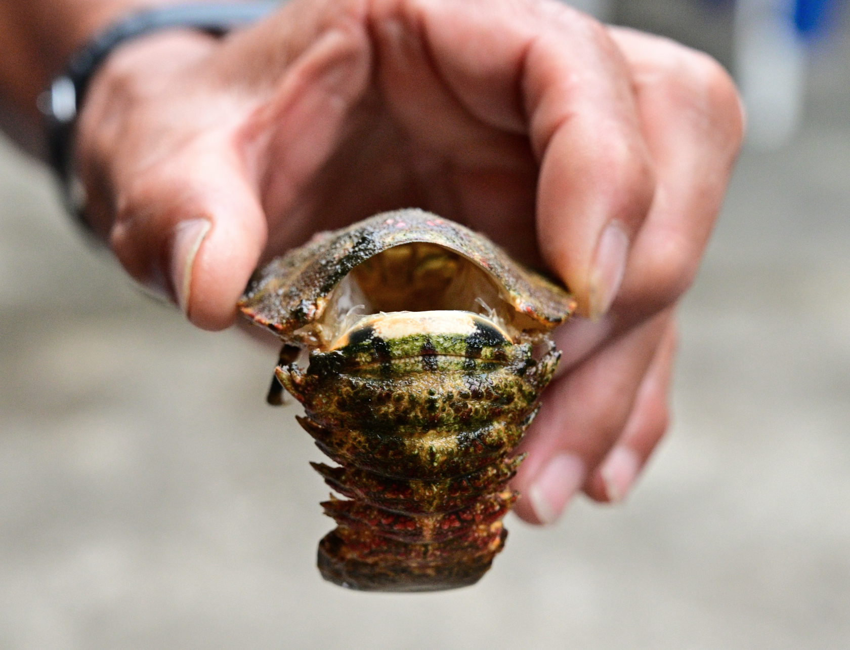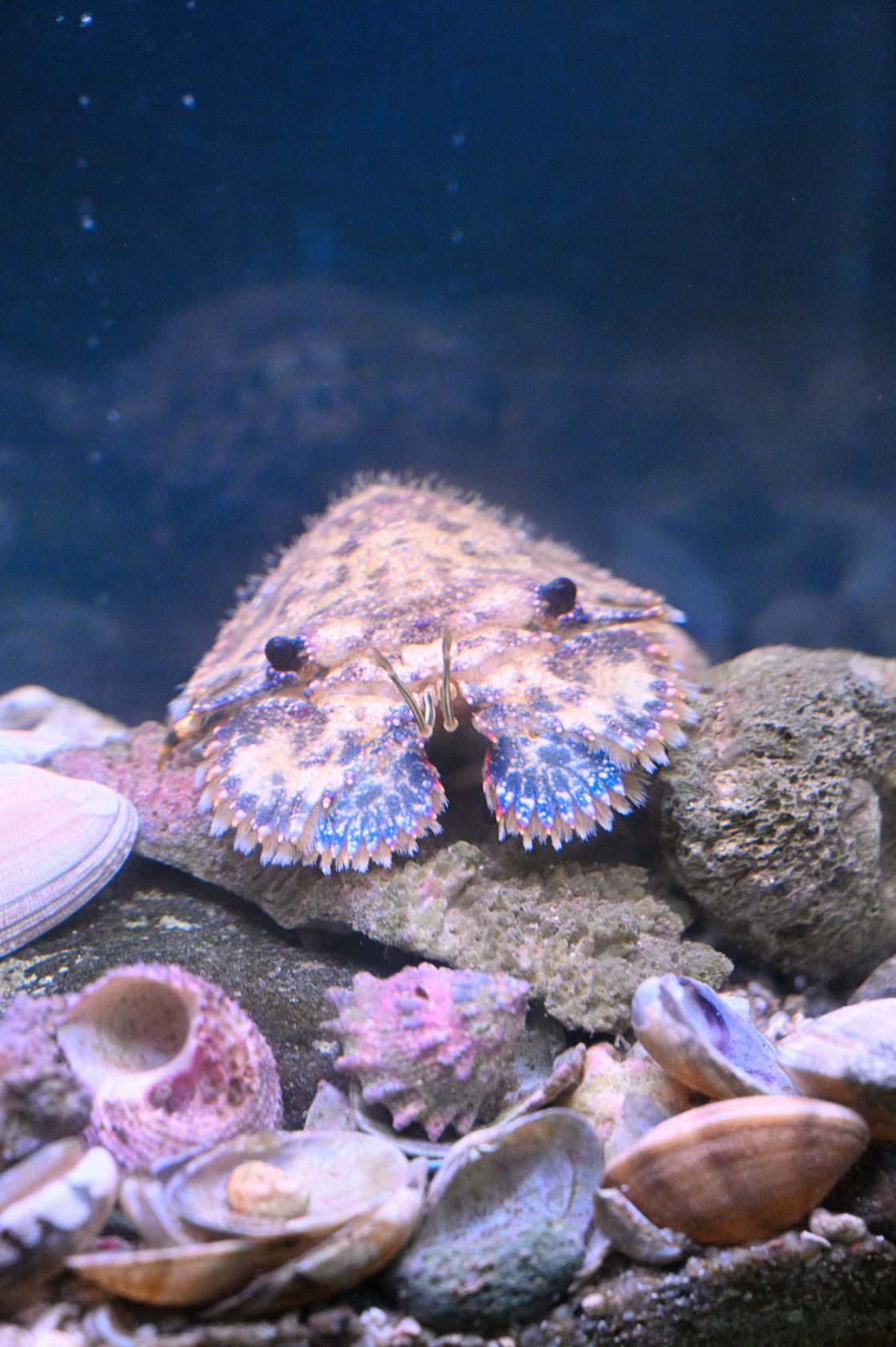 中身だけ食べられてしまったかのようなゾウリエビの抜け殻。まだ生きているような雰囲気があった。