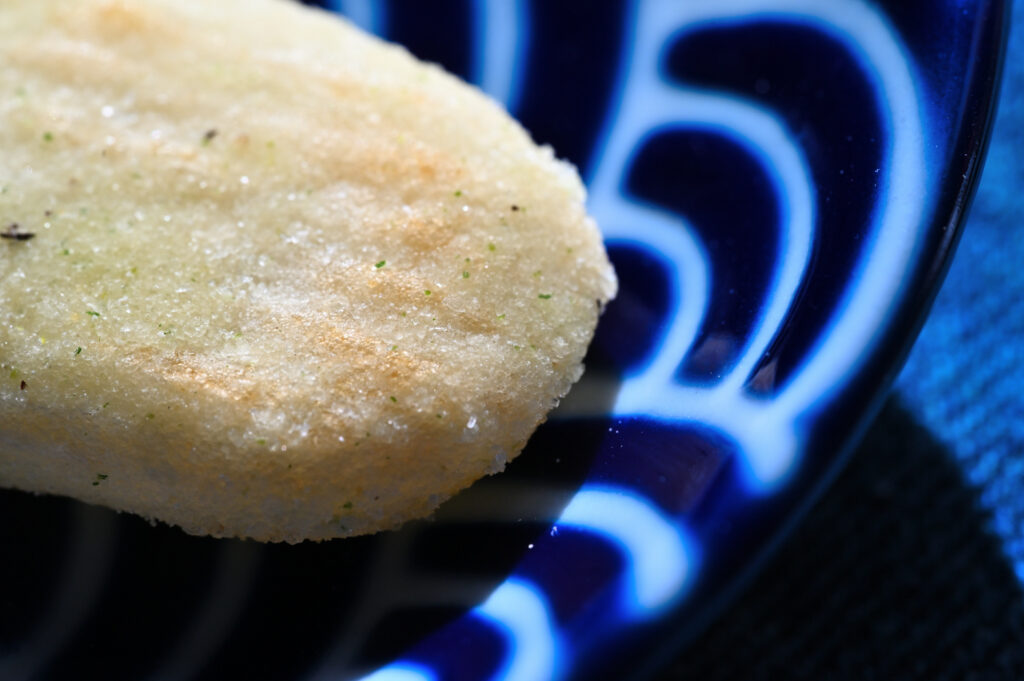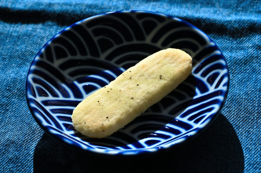 緑色のつぶが下仁田ネギパウダーであろうか。黒色はブラックペッパーだと思われる。