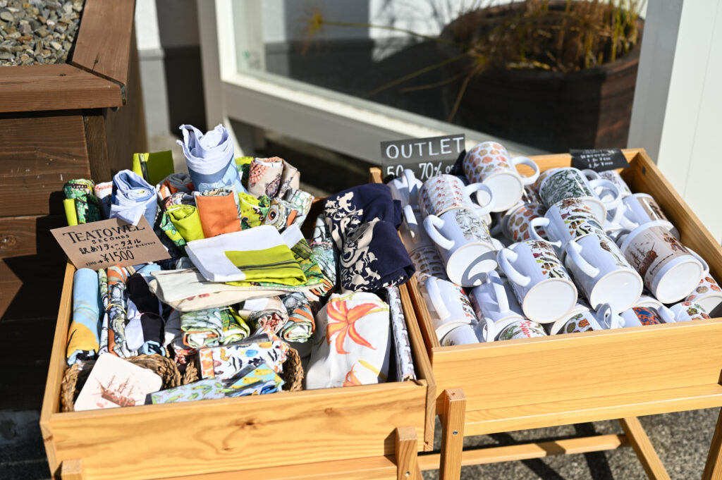 店舗前のワゴン。OUTLETプライスの品々が並べられていた。