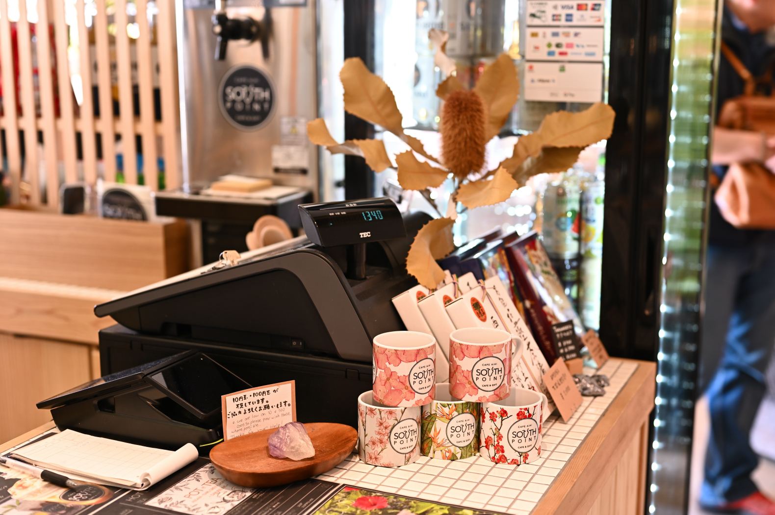 プラントハンターらしく「バンクシア・ロブル(Banksia robur)」のドライフラワーがレジ前に飾られていた。