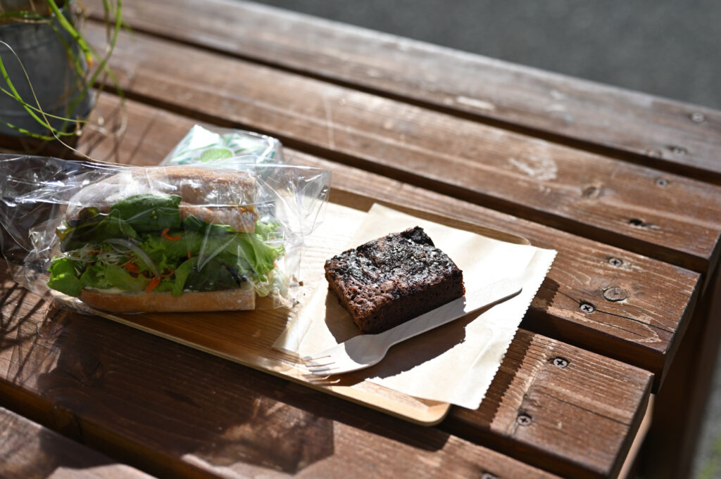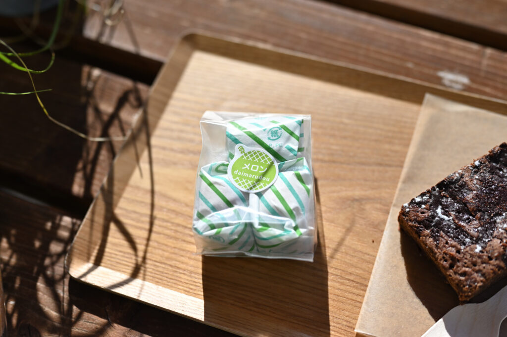 今回はプンジャブチキン+マンゴチャツネサンド、チョコレートブラウニー、お土産のメロン最中を購入した。