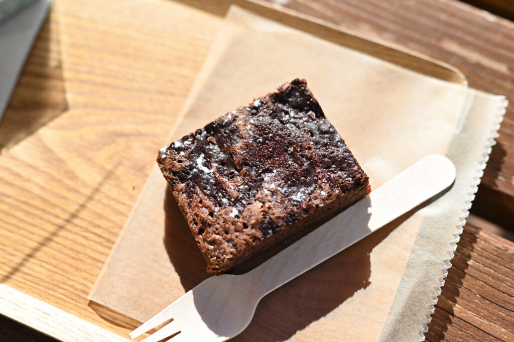 アメリカ発祥のスイーツ。バターとチョコレートを多く使用し、小麦粉の使用が少ないので詰まった食感も楽しめる食べ物。